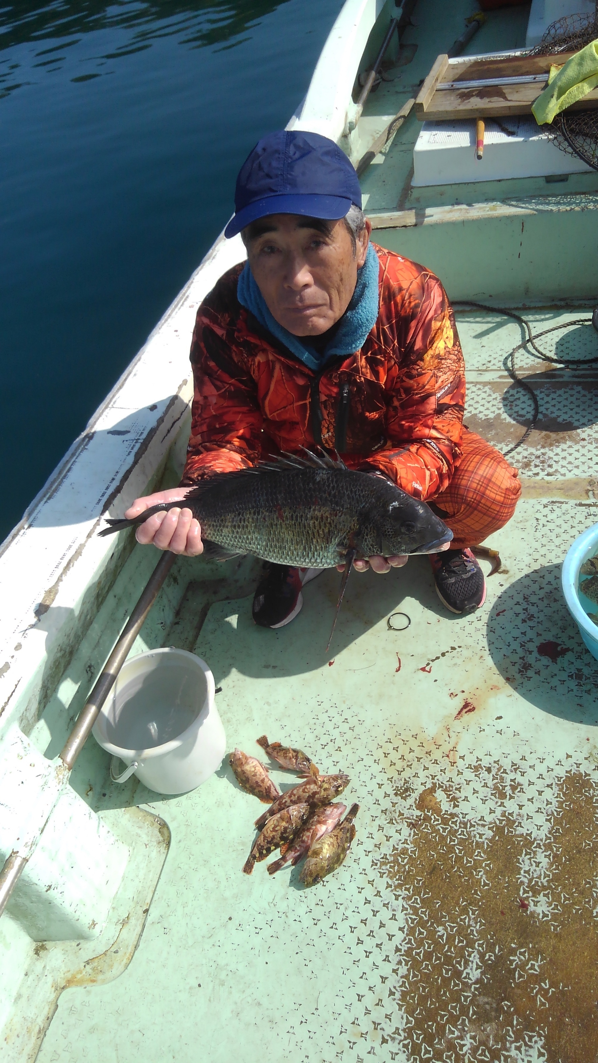 チヌ、47、4センチ、暫定1位、マキエはペレット、ダゴチンで白エビ、8番イカダ